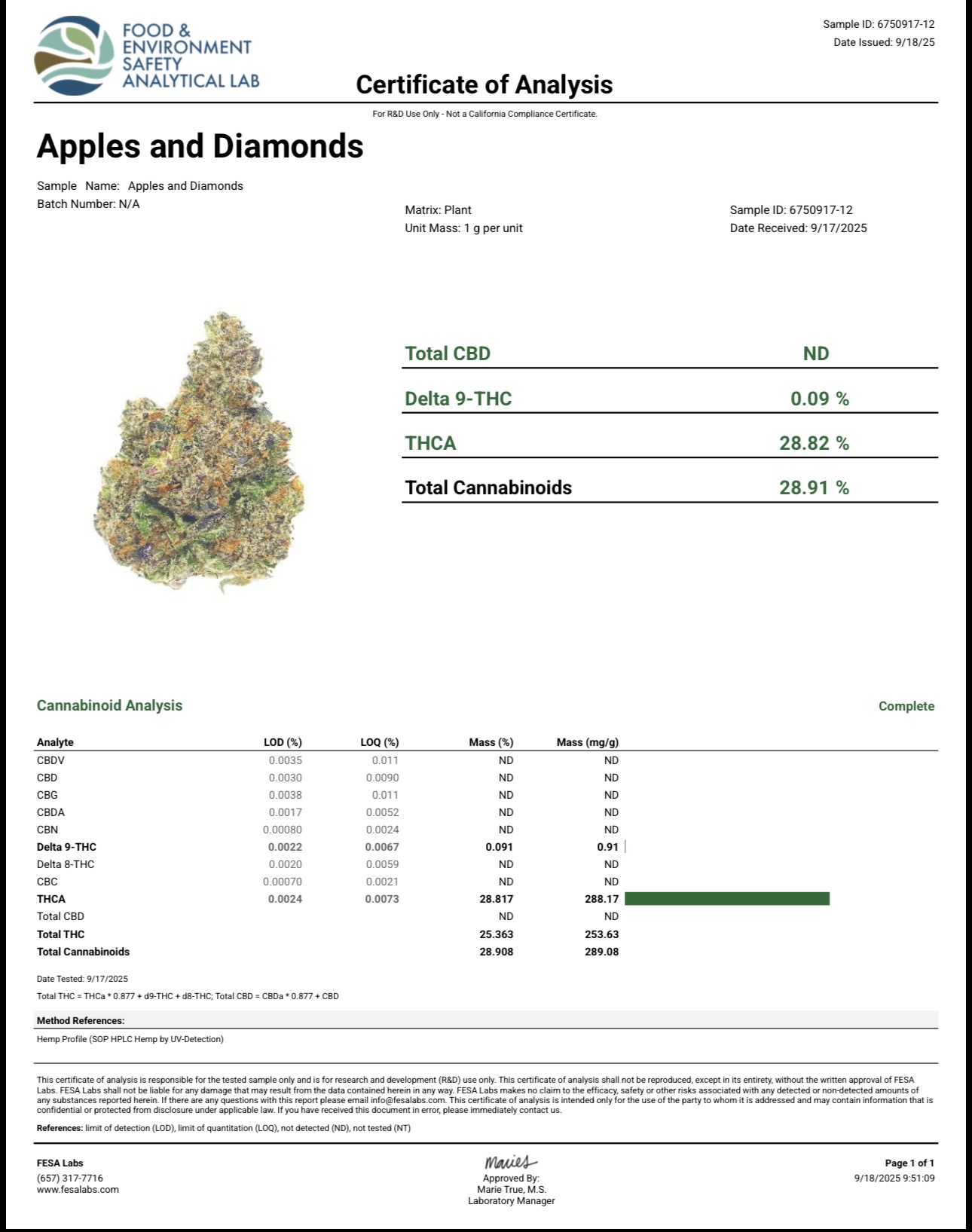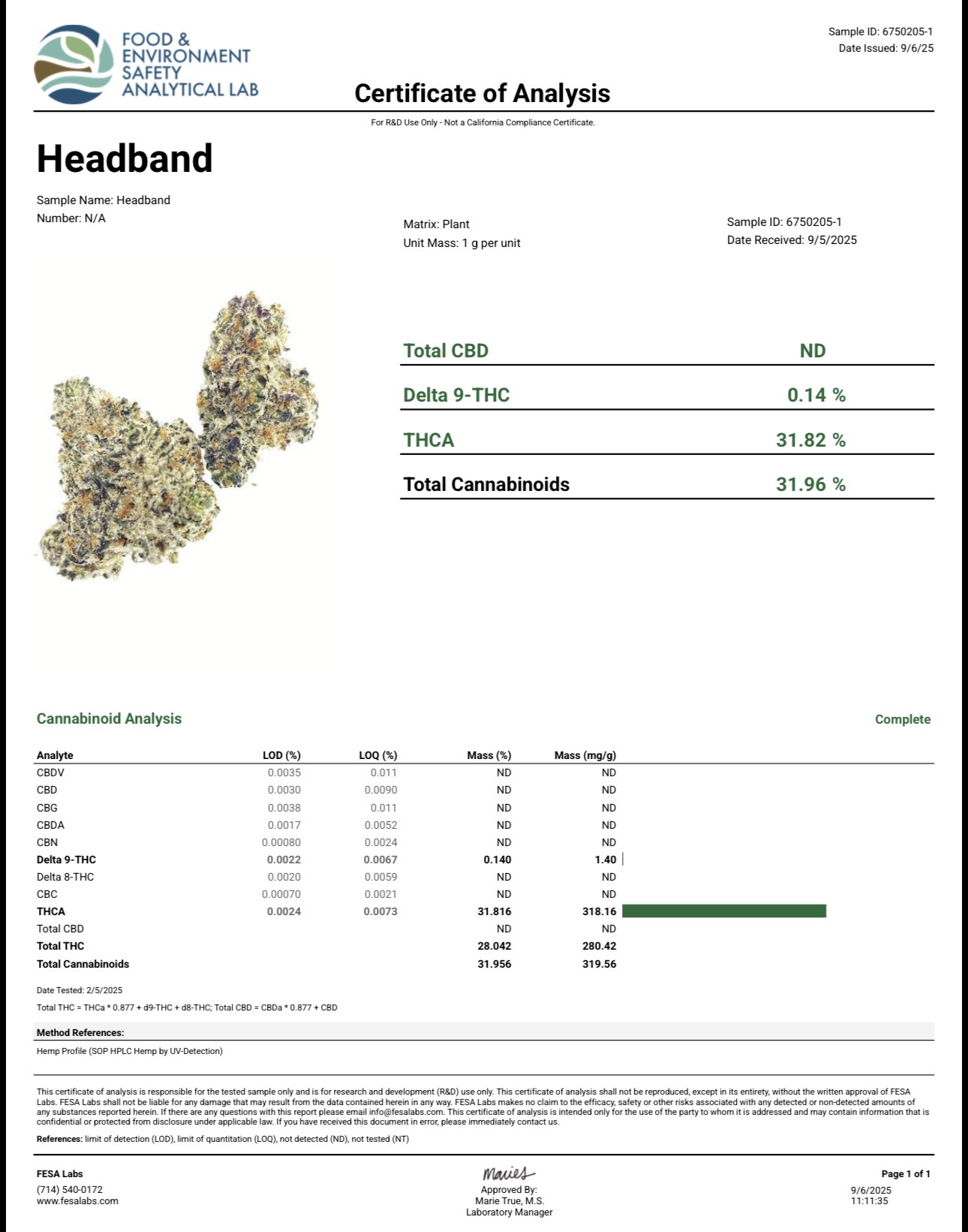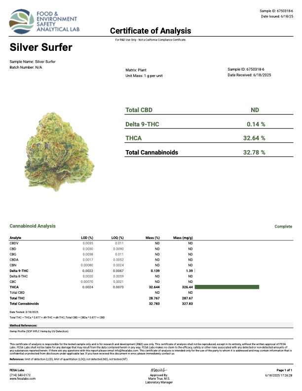A Certificate of Analysis (COA) is a document from an accredited third-party lab that shows the quantity of cannabinoids found in a product, such as CBD. This helps ensure that a manufacturer’s products meet advertised specifications and standards established by federal law.