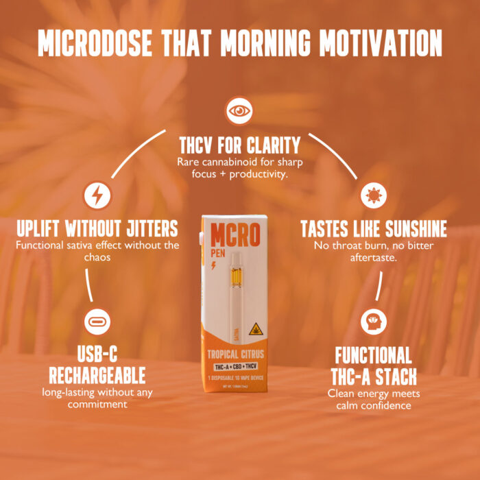 Predictable Energy. Clean Focus. The MCRO Tropical Citrus Pen combines THCa with CBD and THCv...