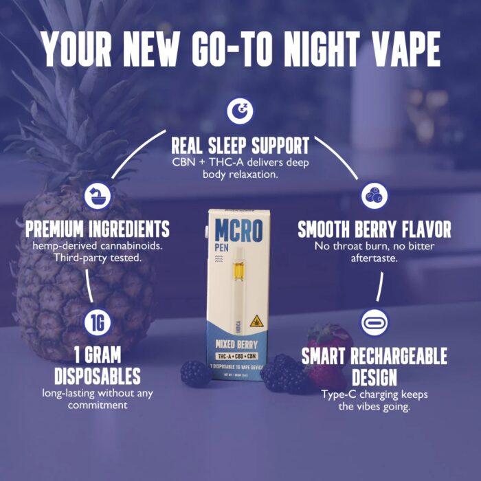 Simple. Predictable. Deeply Relaxing. The MCRO Mixed Berry Pen blends THCa with high CBD and...