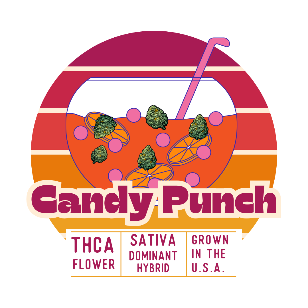 A sativa-leaning hybrid from an African Landrace x Great White Shark lineage, Candy Punch blooms with berry-sweet and grape-soda aroma layered on citrus and herbal fuel. It delivers a smooth, energizing experience—a social warmth that encourages focus, creativity, and lighthearted connection. Ideal for lifting the day, easing mild aches, or sparking engaging vibes.