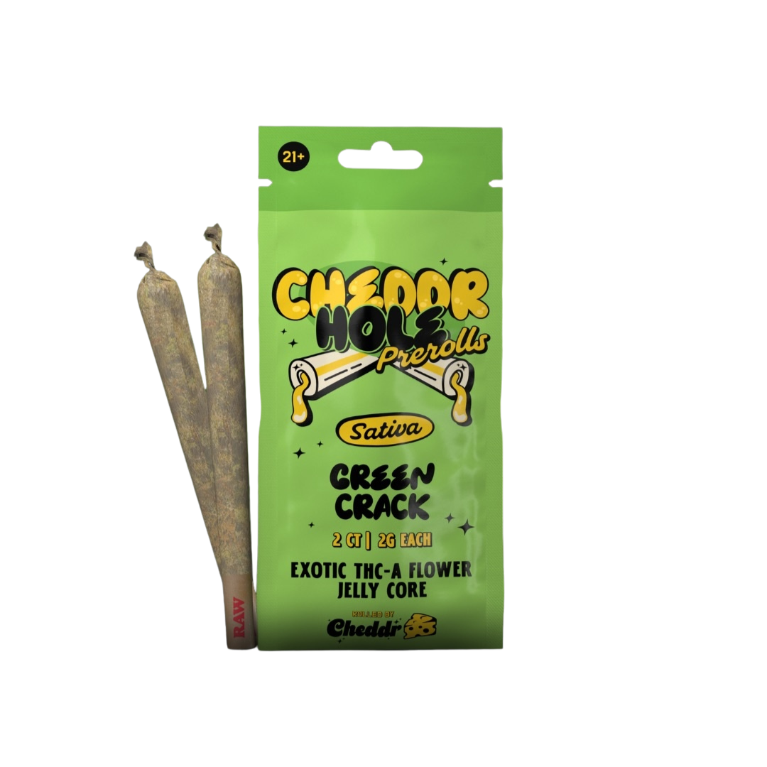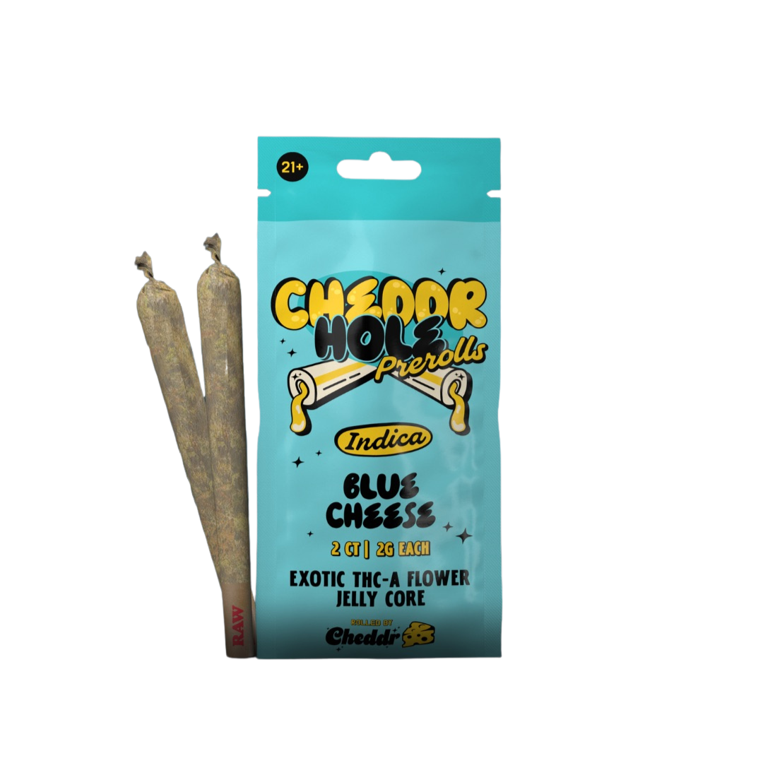 Cheddr Holes are premium infused hash hole pre-rolls crafted for connoisseurs who demand smoothness, flavor, and consistency. Each pack includes two 2-gram pre-rolls featuring premium flower wrapped around a jelly-core concentrate center for a slow, even burn and a terpene-rich experience from start to finish.