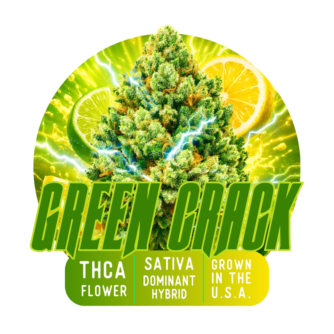 Green Crack is one of the most recognizable daytime sativas, celebrated for its energizing character and vibrant tropical flavor profile. Thought to descend from Skunk #1 with Afghani influence, this strain produces dense green buds with bright orange hairs and a sparkling layer of trichomes. The aroma opens with sweet mango and citrus notes layered over earthy undertones, creating a refreshing and lively sensory profile. When experienced, Green Crack delivers a fast-moving wave of mental clarity and motivation that sharpens focus and encourages productivity. Many users appreciate its ability to keep the mind active and alert without heavy body sedation, making it well suited for work, creative tasks, or social interaction. Medicinally, Green Crack is often chosen to help manage fatigue, stress, and low mood while supporting focus and daytime energy. With its bold tropical flavor and stimulating experience, this strain has earned its reputation as a dependable option for anyone seeking mental clarity and motivation throughout the day.