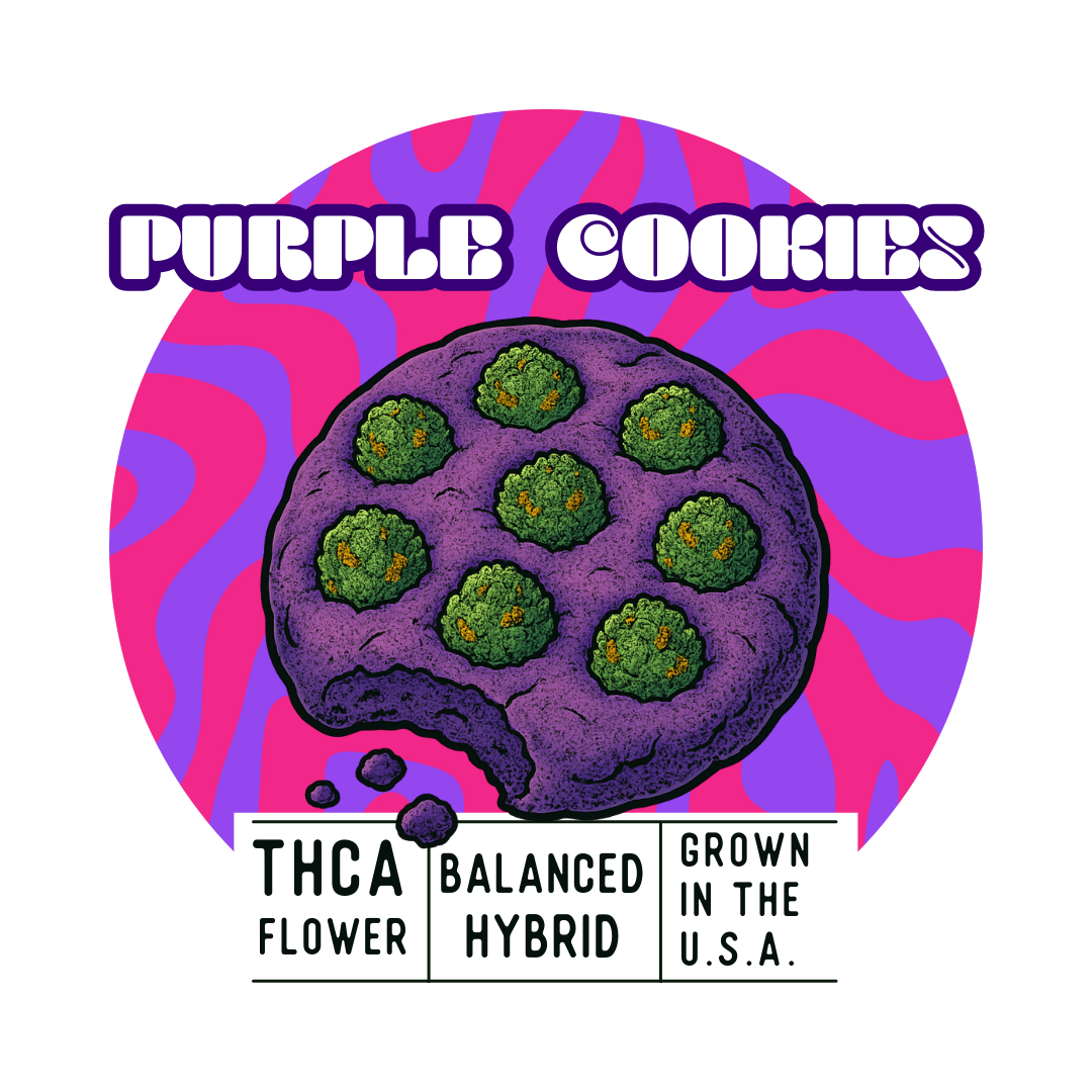 28% – Purple Cookies balances playful clarity with soothing ease. A true 50/50 hybrid meld of Cookie F2 and Purple Caper, it delivers grape-tinged sweetness with nutty, earthy layers and a smooth, resinous finish. Perfect for social sessions or winding down with friends, it brings calm creativity and mood uplift without overwhelm.