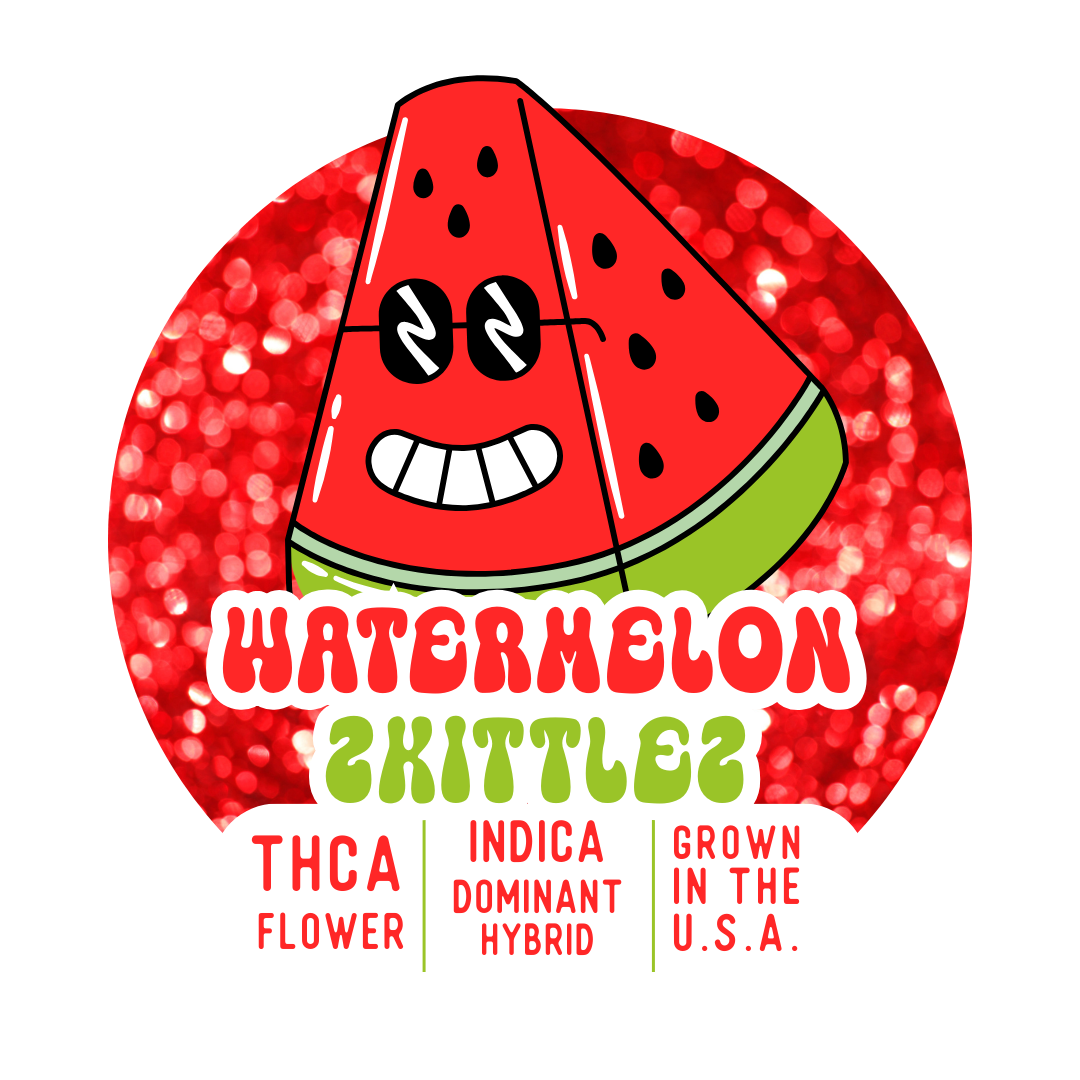 Watermelon Zkittlez is an indulgent indica-dominant hybrid bred from Watermelon and Zkittlez, two cultivars known for their vibrant terpene profiles and calming effects. The result is a strain bursting with sweet tropical fruit, juicy watermelon, and candy-like citrus notes. Buds are often chunky and resin-rich with a deep green hue, making it as visually appealing as it is flavorful. The experience begins with a gentle cerebral uplift, easing stress and brightening mood before settling into a deeply relaxed body state. Many turn to this strain to combat anxiety, chronic pain, insomnia, or simply to unwind after a long day. With its full-spectrum flavor and mellow, mood-boosting effects, Watermelon Zkittlez offers a smooth, satisfying way to dial down the noise and ease into calm.
