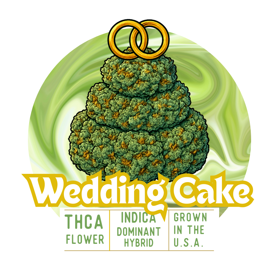 28% – Wedding Cake evokes dessert-filled comfort with a creamy, vanilla-spiced aroma and gently soothing effects. Its lineage—Triangle Kush x Animal Mints—creates a reliable path to relaxation. Ideal for easing physical tension and re-balancing after long days.